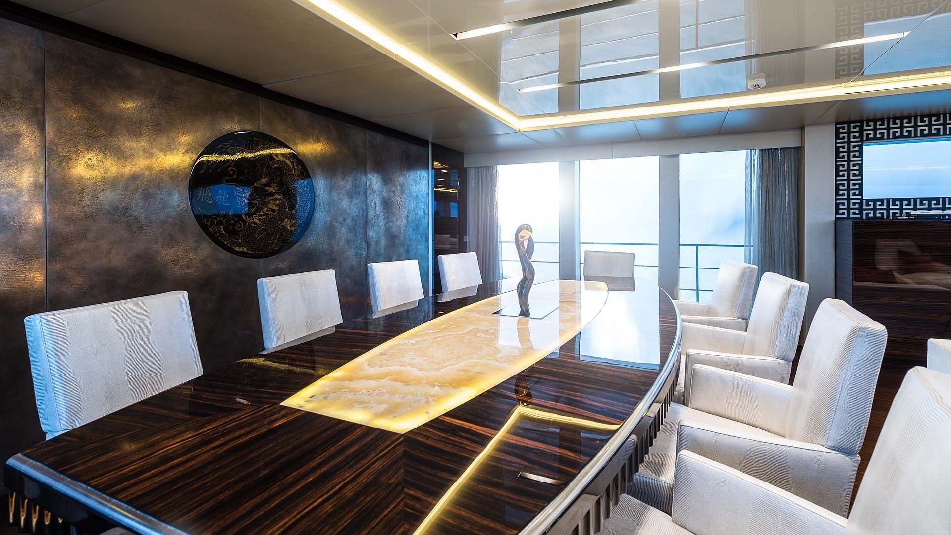 The interior styling features some lavish materials, such as onyx, marble and woods. There is a spacious salon with ample and comfortable lounge space.