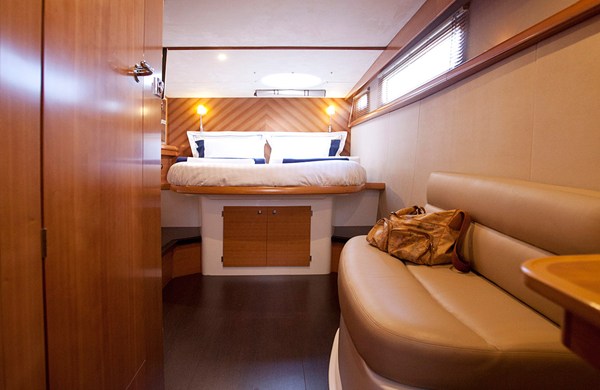 The motor yacht CHRISMA offers an elegant interior featuring warm wood panels, soft neutral furnishings and fine attention to décor detail.