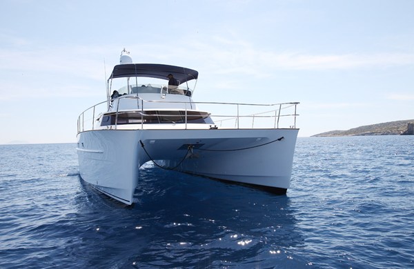 Luxury power catamaran CHRISMA was built by French Fountain Pajot, she is a Cumberland flagship owners version measuring 14m (46ft). Charter yacht CHRISMA is available in the east Mediterranean for up to 6 guests in 3 en-suite cabins.