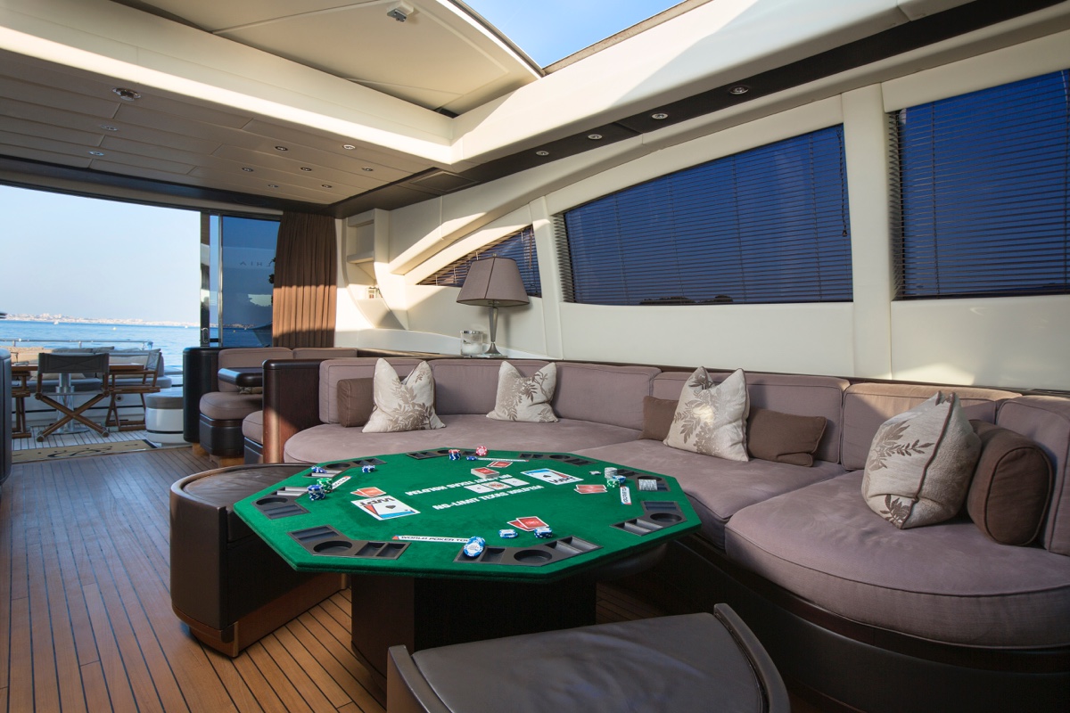 NOTABLE FEATURES: ~ Stylish and spacious interior ~ Retractable roof in main salon ~ Private saloon with relaxation room ~ Spacious aft deck ~ Great selection of water toys