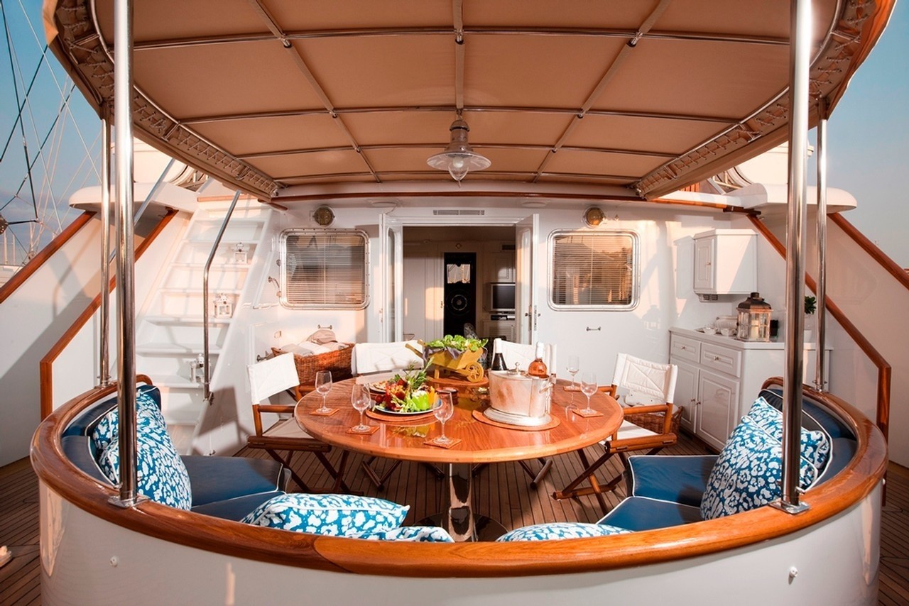Charter yacht LALIBELA offers deluxe accommodation for up to 12 guests in 6 en-suite cabins. The master suite and one twin cabin are on the main deck, forward of the salon. The master suite is full beam of the yacht forward, with a private study, king size bed, large closet and luxury en-suite facilities.