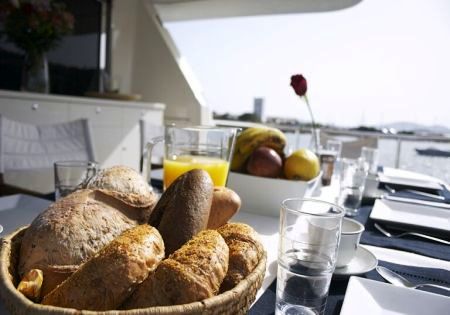 Motor yacht New Flash can comfortably accommodate up to 8 yacht charter quests in four separate staterooms. She provides two equal sized double cabins and also two further twin cabins. All of the rooms which have their own marble ensuite bathrooms plus a telephone and music stereo.