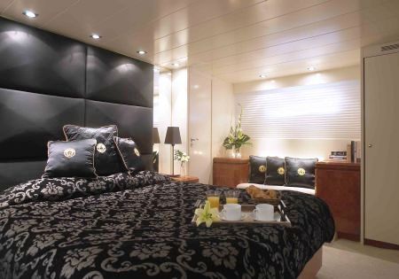 Motor yacht New Flash can comfortably accommodate up to 8 yacht charter quests in four separate staterooms. She provides two equal sized double cabins and also two further twin cabins. All of the rooms which have their own marble ensuite bathrooms plus a telephone and music stereo.
