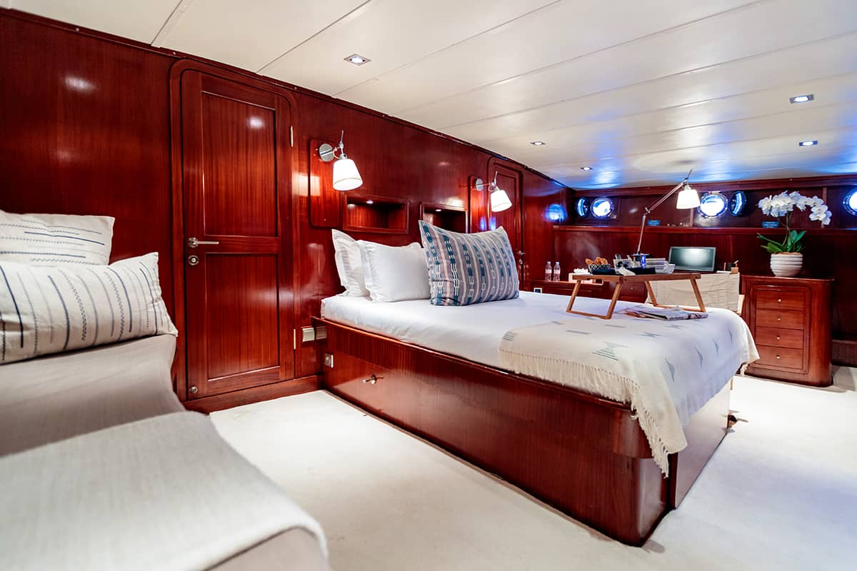 Accommodation onboard is offered for up to 10 guests in five cabins.