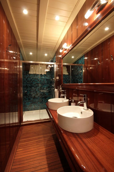 The master cabin is full beam of the yacht aft, with a center lined king size bed and seating. The VIP cabin is forward and full beam of the yacht, with a king size bed and love seat. Two cabins have double beds and a further 2 cabins have a small double and a single bed.