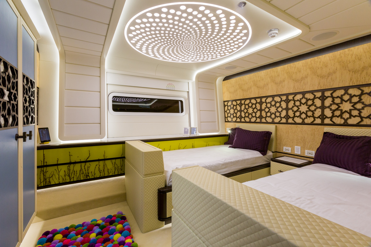 NOTABLE FEATURES OF KHALILA: ~ Imposing golden-coloured hull and superstructure ~ sporty & dynamic looks ~ 'matching' tender ~ clean modern interiors with fabulous use of ...