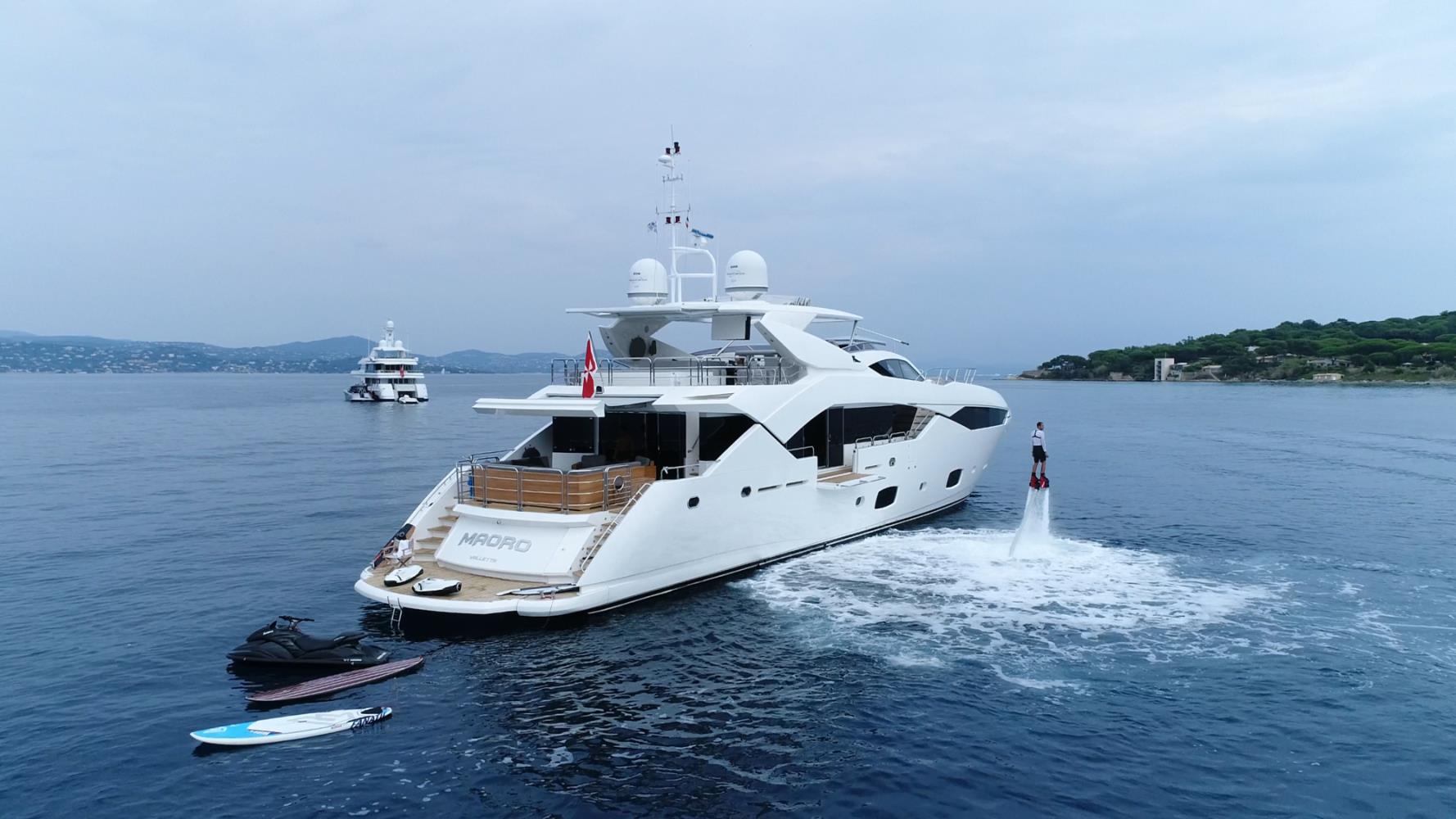 Launched in 2013, motor yacht MAORO is a beautiful Sunseeker 115 Sport vessel, built by the prominent UK shipyard, Sunseeker International. This 34-metre yacht offers accommodation for up to 10 guests in 5 cabins.