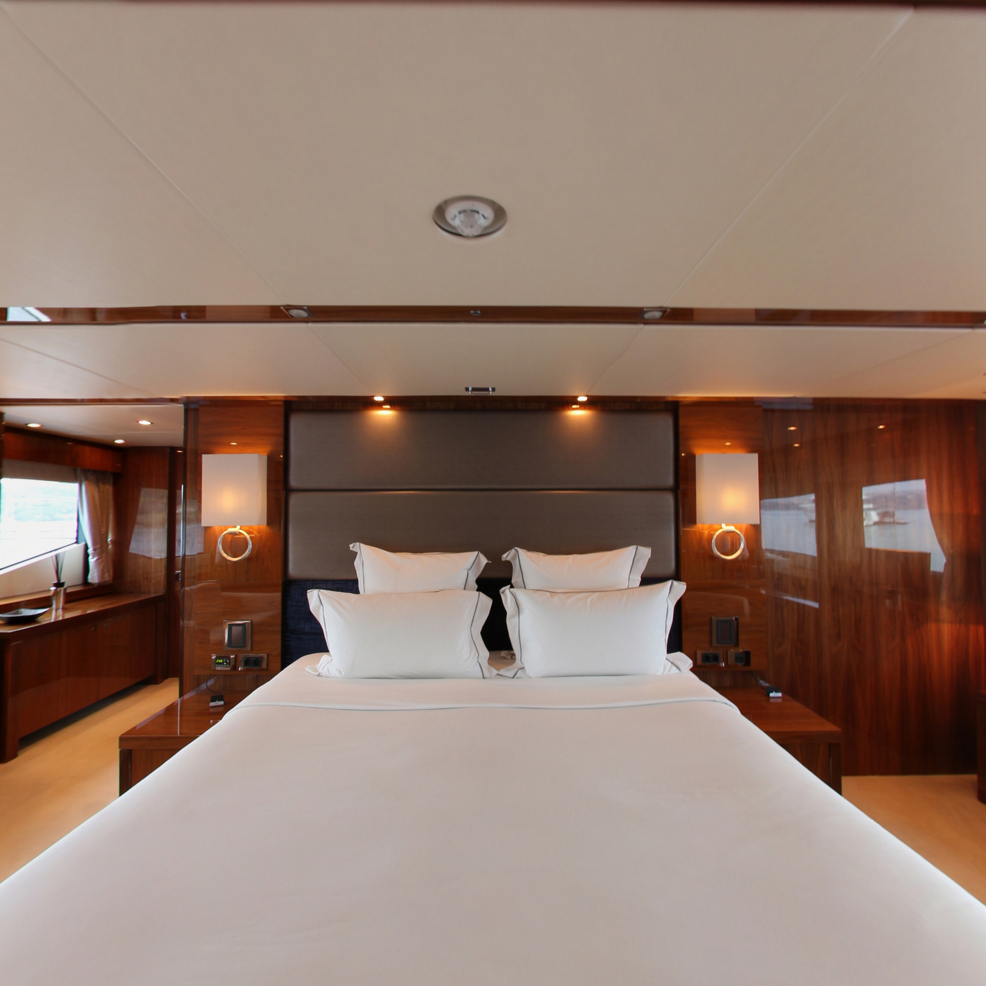 The accommodation layout consists of the owner's suite with a king-size bed, two double and two twin cabins.
