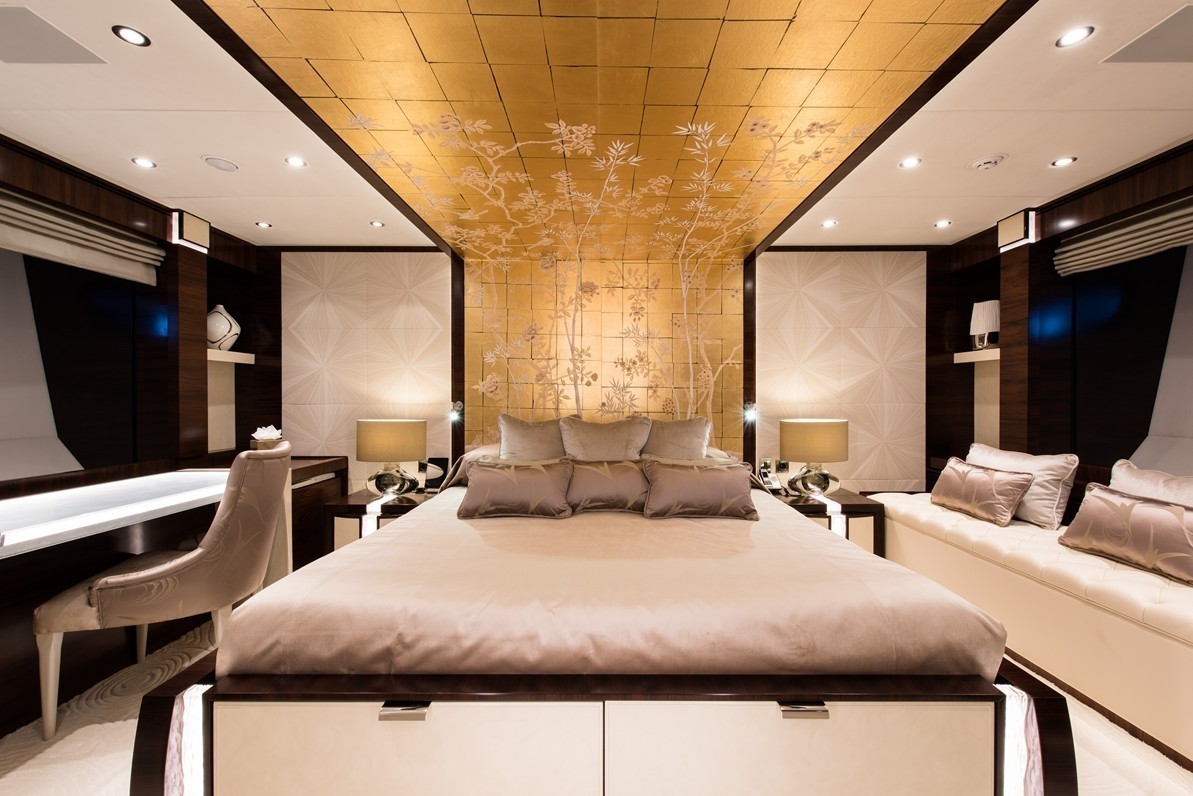 This motor yacht provides extensive outdoor spaces, a huge sundeck, as well as a cozy beach area, with a generous swimming platform. Guests can relax on the vast sun pads or have a drink at the bar and enjoy dining alfresco.