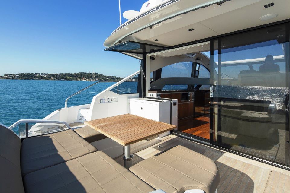 The salon flows harmoniously out onto the aft deck, where guests may dine alfresco or simply relax on the ample seating, which converts into a massive sunpad with ease. The foredeck offers a further double sunpad, while the ...