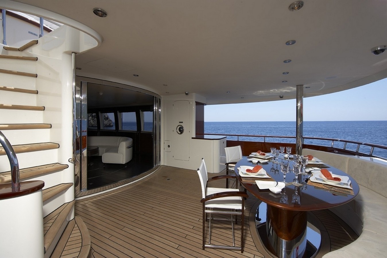 Yacht CYRUS ONE’s interior is decorated in a contemporary style, designed by Digital Space. Her main salon features a unique circular dining table with circular surround seating.