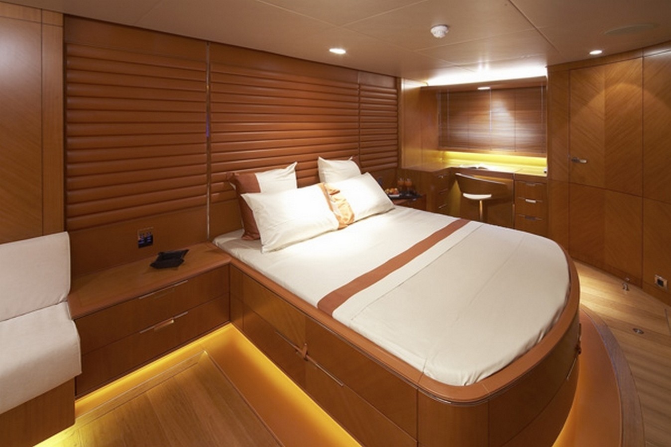 Yacht CYRUS ONE’s interior is decorated in a contemporary style, designed by Digital Space. Her main salon features a unique circular dining table with circular surround seating.