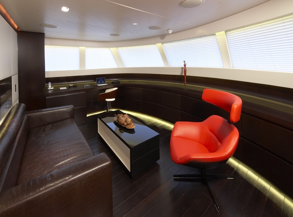 The main deck also houses a private office for her charter guests to enjoy which can be converted to another cabin. The remaining accommodation is located below decks and includes a Master, and two Guest cabins.