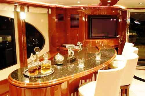 Her main saloon integrates a social bar area and a formal dining area for eight people. For shading the guests from the harsh sun the top deck is partially covered for those who wish to relax without over heating.