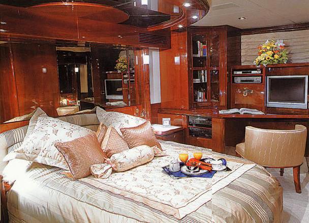 The owners´ cabin is positioned right up on the main deck and thus boasts excellent panoramic views. This master cabin includes a huge ensuite bathroom. There are also two roomy twin cabins and one double VIP cabin.