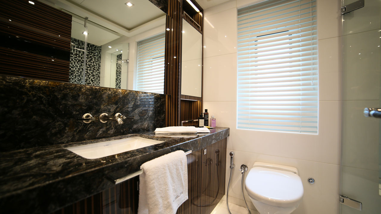 Her main deck is elegant and comfortable, with a large salon, bar, game room and dining room for 10 guests. The owners cabin and office is located forward. The living space is light and airy, and is perfect for socialising and relaxing.