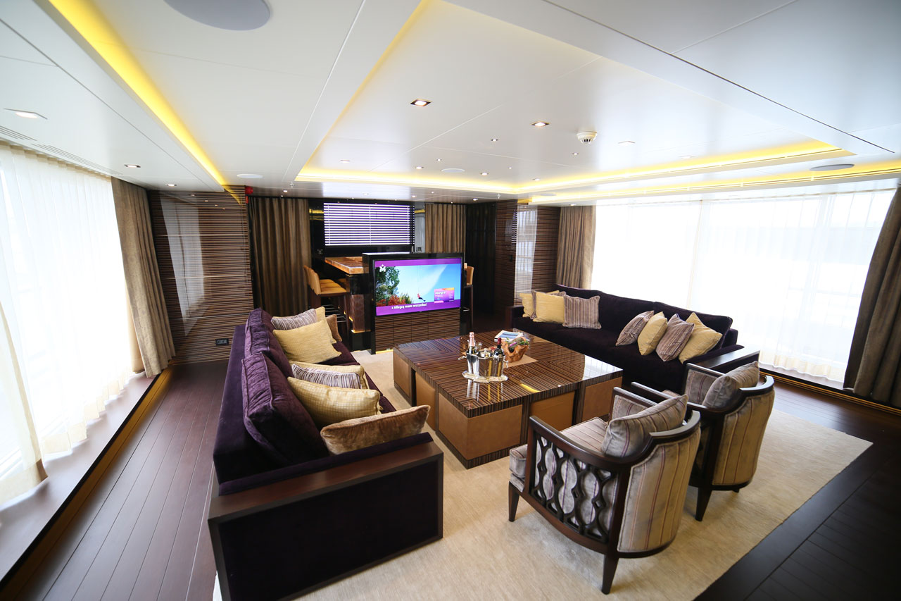 A second salon is found on the upper deck, together with a game room and gym, as well as a Turkish Hamam, the wheelhouse and the Captain's cabin and office mess.