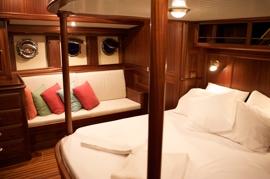 Guest accommodation is fore and aft of the salon in 3 cabins.