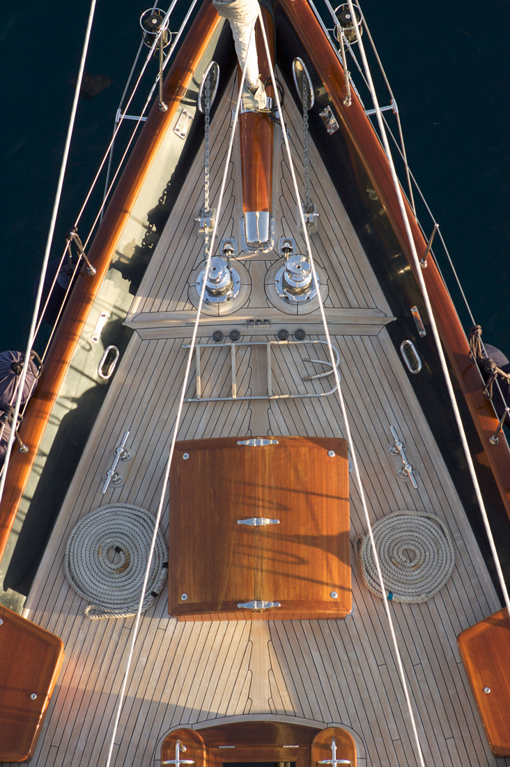 Her wide teak decks provide generous places to enjoy, including a double sun pad on the foredeck.