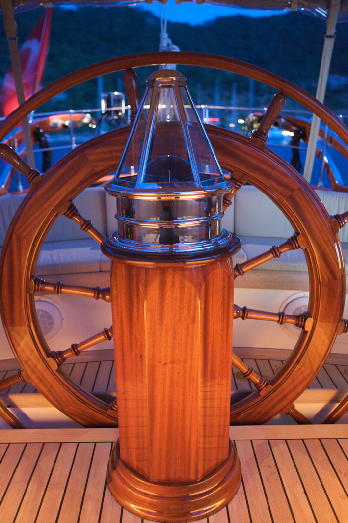 Further aft and separate is the helm and crew cockpit with additional seating if guests would prefer. Her wide teak decks provide generous places to enjoy, including a double sun pad on the foredeck.