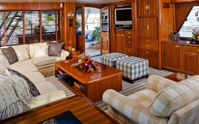 The master cabin boasts a king size bed and en-suite facilities with a deluxe tub. A VIP cabin offers a king size bed and shower room. Two further guest cabins have side by side twin beds, which can convert into queen beds with ease.