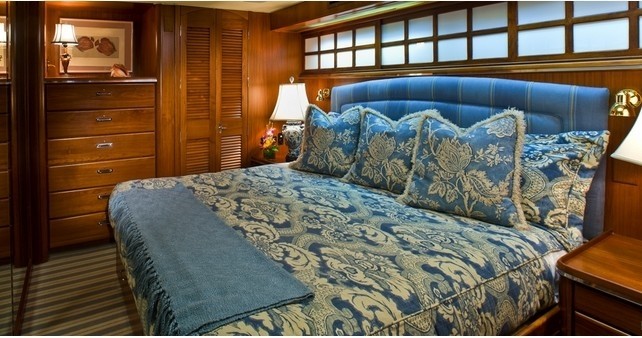 The master cabin boasts a king size bed and en-suite facilities with a deluxe tub. A VIP cabin offers a king size bed and shower room. Two further guest cabins have side by side twin beds, which can convert into queen beds with ease.