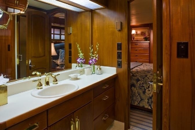 The master cabin boasts a king size bed and en-suite facilities with a deluxe tub. A VIP cabin offers a king size bed and shower room. Two further guest cabins have side by side twin beds, which can convert into queen beds with ease.