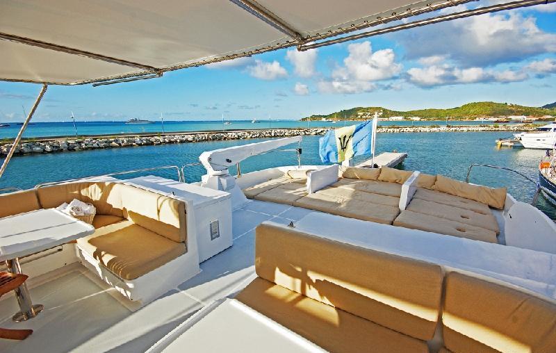 Sun worshipers will enjoy the generous foredeck complete with sunpads and seating, or take advantage of the spacious sundeck, offering a large sunpad, alfresco dining, additional seating and even co-pilot seats.