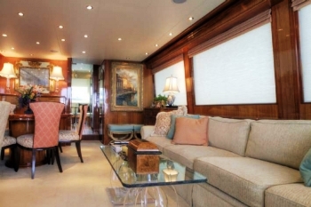 The main salon is an open plan featuring a generous lounge, with sofa, coffee table, complete wet bar and formal dining table. Forward of the salon is a day head, followed by a spacious country style kitchen. Guest accommodation is below decks in 4 en-suite cabins.