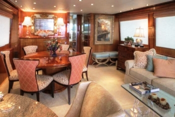 The main salon is an open plan featuring a generous lounge, with sofa, coffee table, complete wet bar and formal dining table. Forward of the salon is a day head, followed by a spacious country style kitchen. Guest accommodation is below decks in 4 en-suite cabins.