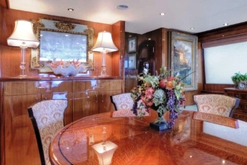 The main salon is an open plan featuring a generous lounge, with sofa, coffee table, complete wet bar and formal dining table. Forward of the salon is a day head, followed by a spacious country style kitchen. Guest accommodation is below decks in 4 en-suite cabins.