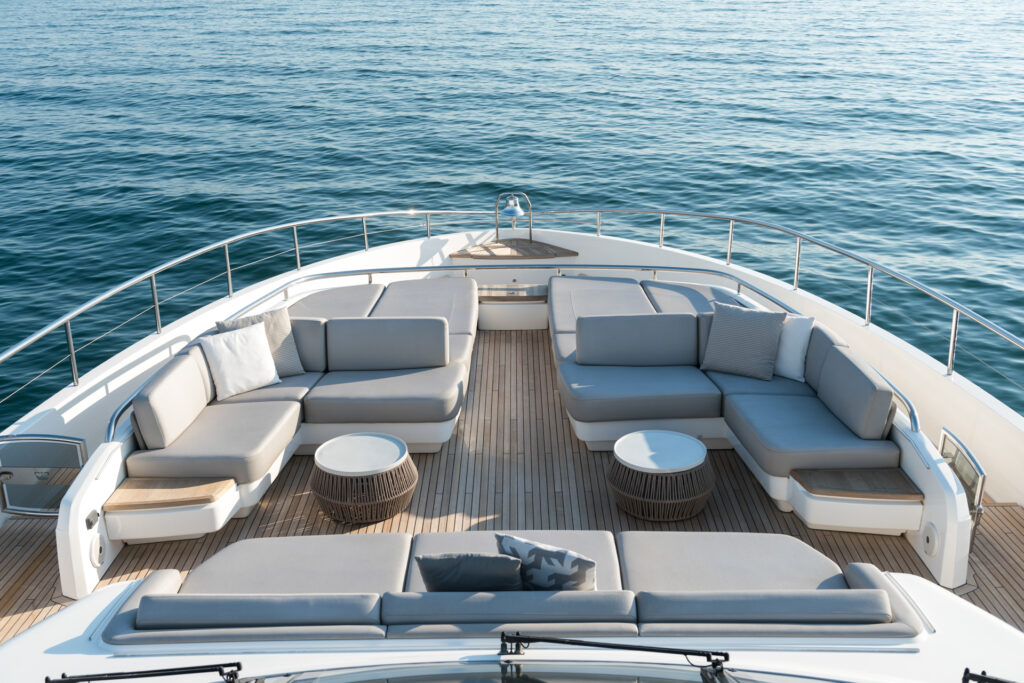 Moreover, there are expansive deck areas, as well as a spacious flybridge, alternative seating and sunbathing area, all positioned on the foredeck, and an innovatively designed aft cockpit and transom area.