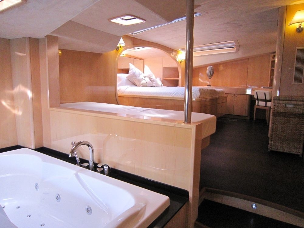 Additional sunning space is available on the expansive foredeck and 2 large safety trampolines.