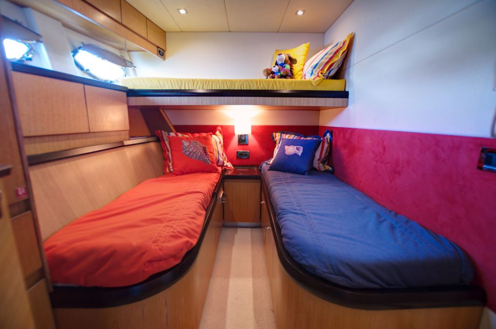 The MIA motor yacht offers four staterooms below decks for up to 9 charter guests. The Master Stateroom is full-beam with its own unique feature, a dinette for two. Full-size windows to both port and starboard give you a dreamy, panoramic view. The Master Head has a beautiful blue granite sink and an exquisite tub that was made for pampering.