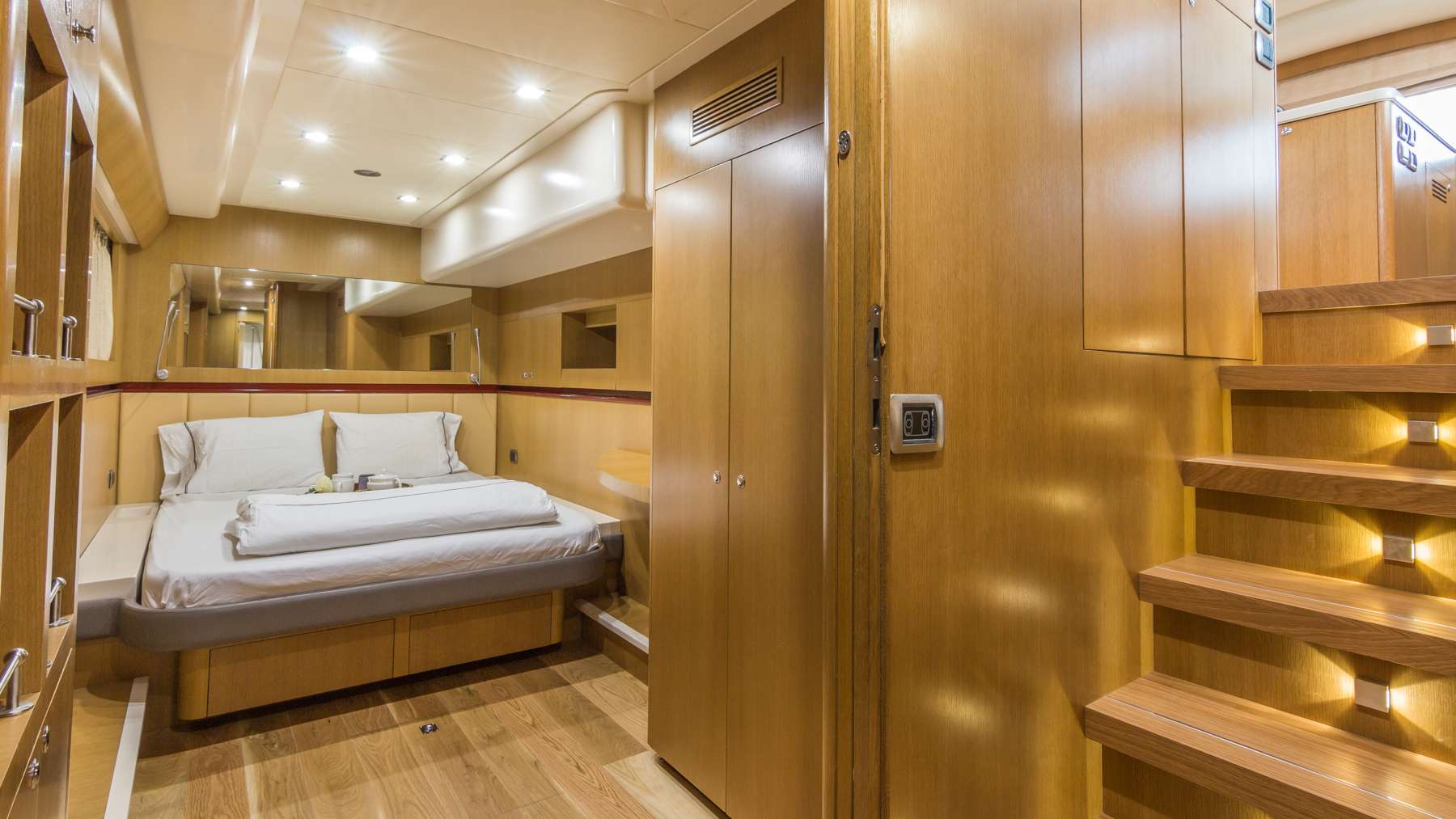 At 18.8m (61.7ft) this motor yacht boasts three en-suite cabins for up to 6 charter guests.