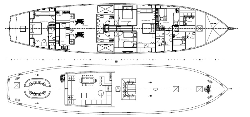 She offers accommodation for 12 guests in 6 spacious cabins.