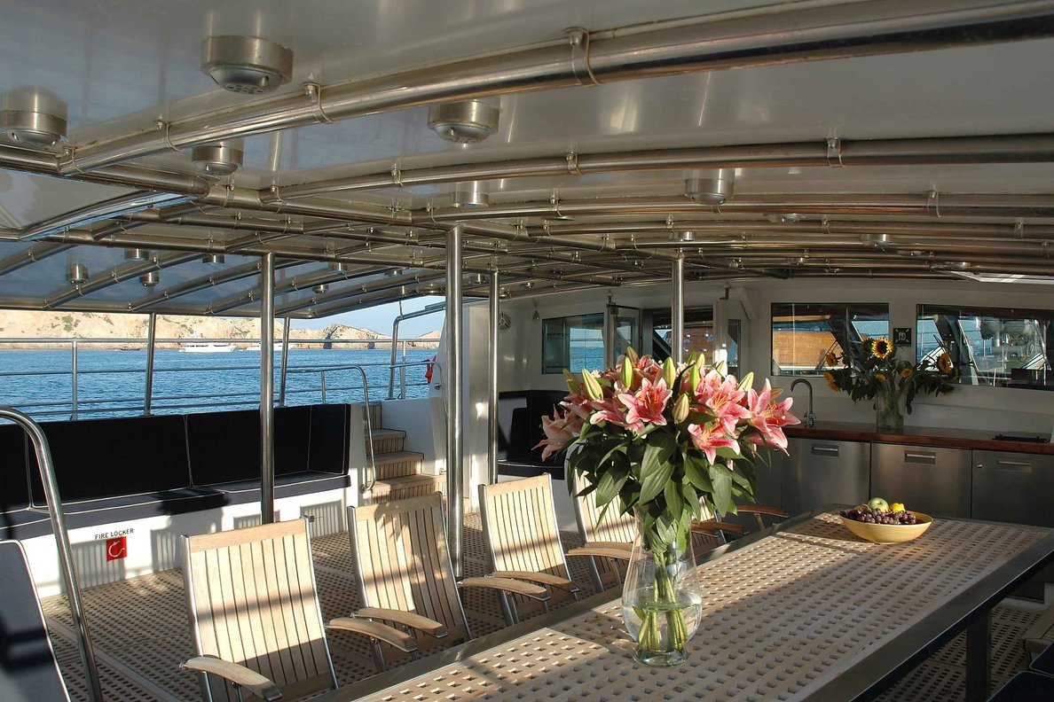 The yacht has an aluminium hull built by Royal Huisman, however, all the rest of the work has been done by the Owner's team in collaboration with Dykstra Naval Architects and the Brinkhuis Scheepstechniek.