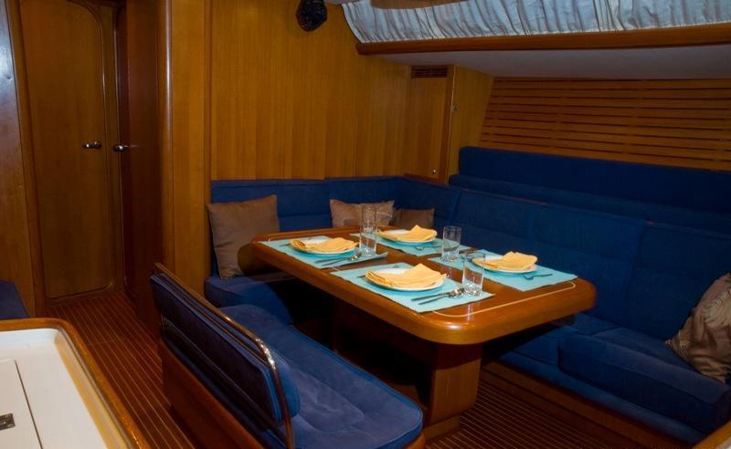 The salon, dining and galley are an open plan, making the most of a social atmosphere. Upon entering the main companion way, the complete galley with island is on the port side, the navigation table to starboard. Forward on the starboard side, is a generous L shaped settee, formal dining and additional seating.