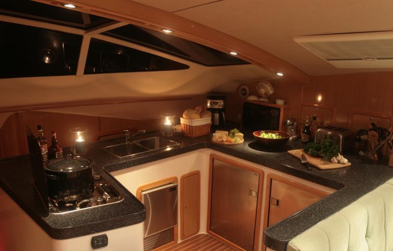 The salon, dining and galley are an open plan, with a beam of 8.5m (28ft), there is ample space for everyone. Large surrounding windows provide idyllic views and plenty of natural light. Guest accommodation is below in the port and starboard hulls, the yacht benefits from 4 separate air conditioning units for optimum comfort.