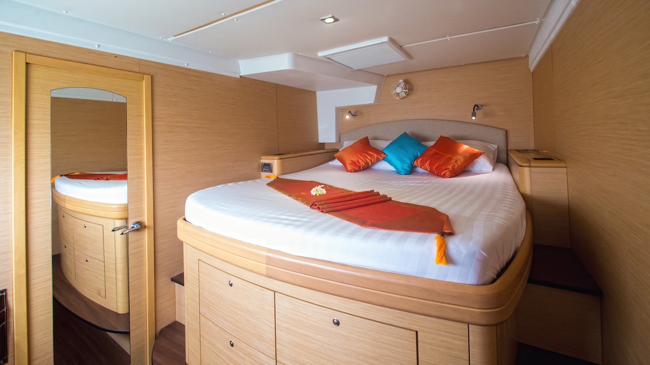 There is 360° visibility from the saloon and an exceptional luminosity in the cabins thanks to large hull windows. SEA SPIRIT comes fully equipped for Thailand cruising and can comfortably accommodate up to eight guests in four spacious, en-suite cabins.