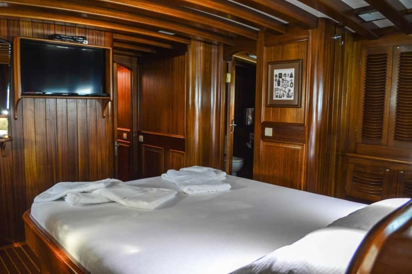 Each cabin has its own ensuite bathroom with fully enclosed mosaic stone shower and electrically flushed toilet. Yacht ENDERIM A has a 4m tender w/Selva 50hp, 4m dinghy w/9.9hp, water skis, ringo, 2 canoes, fishing equipment, Snorkeling gear.