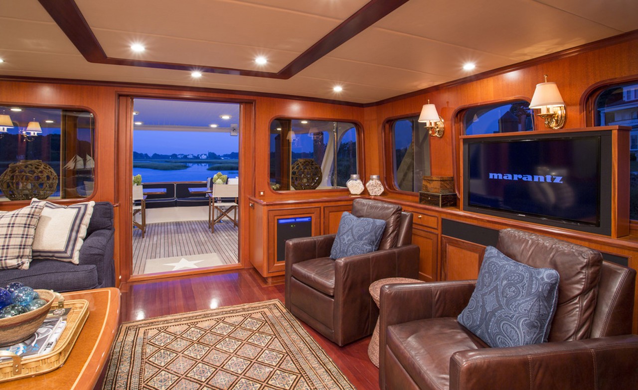 Forward of the salon is the formal dining table. Panoramic windows through-out the main deck, receive ample natural light, whilst providing optimum views.