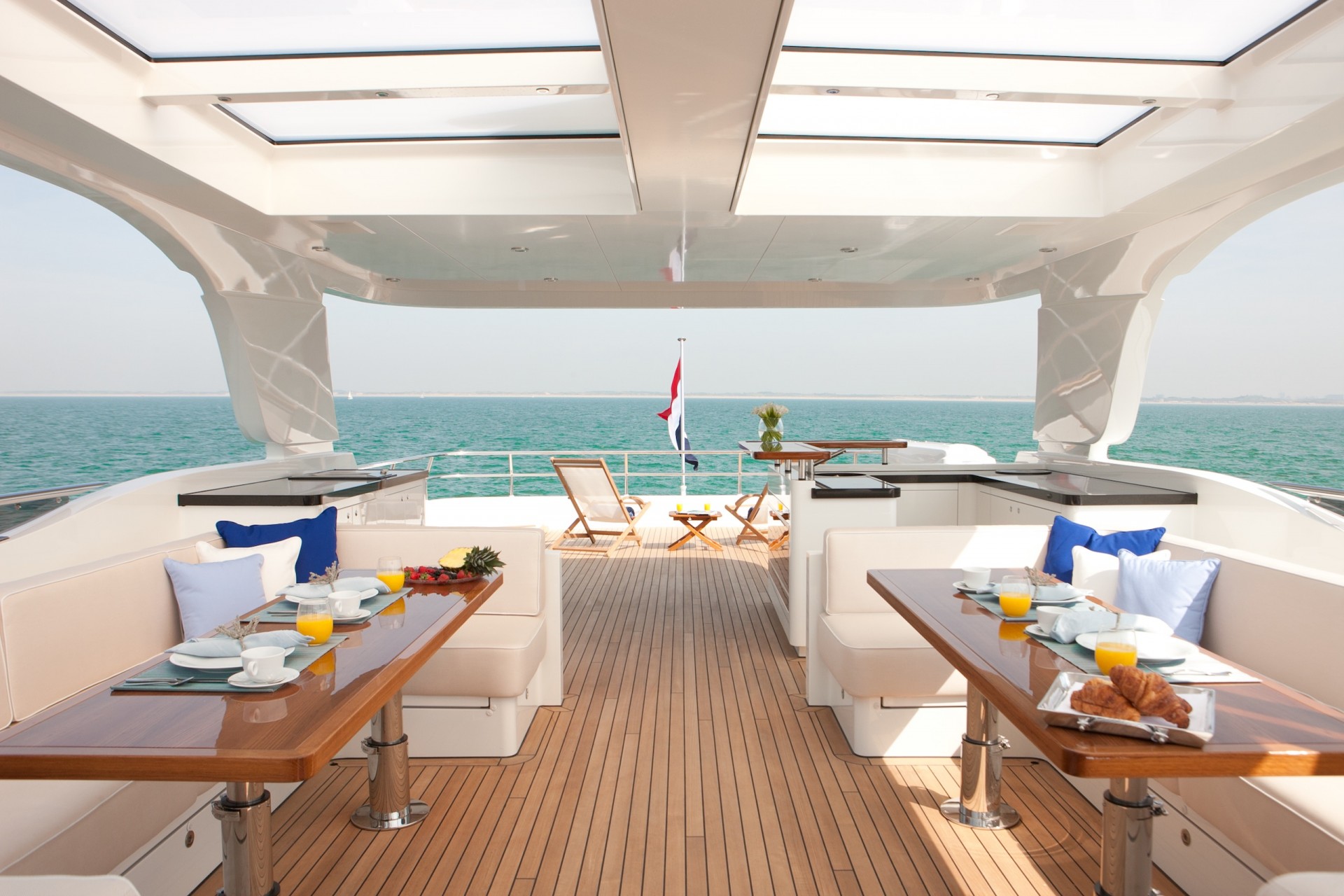 Firefly's exterior was designed by Frank Laupman from Omega Architects, while her interior design is by Vickers Studio and was inspired by the sea.