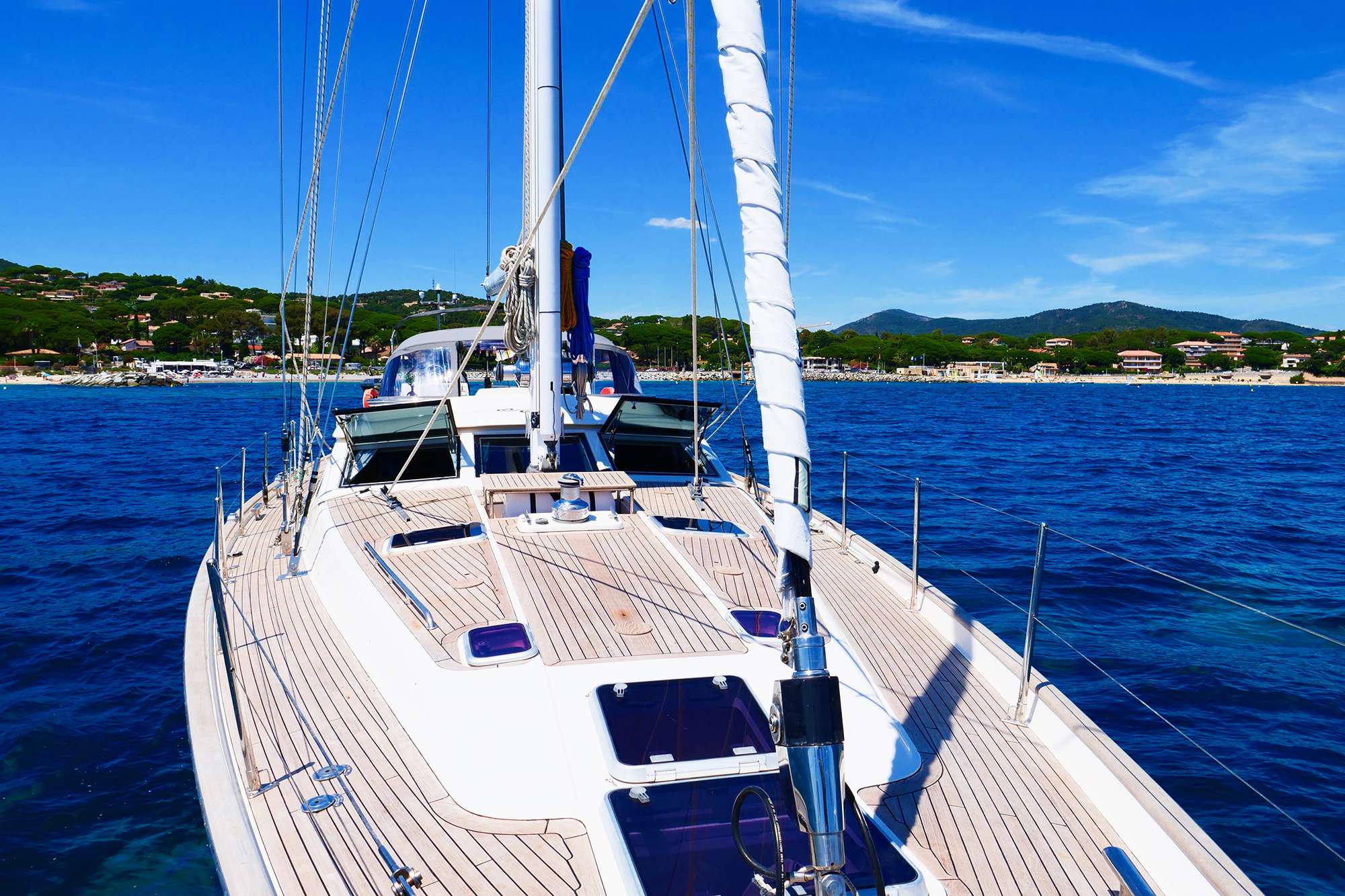 Further deck spaces aft of the helms and on the foredeck, are ideal for sunning or simply relaxing at anchor.