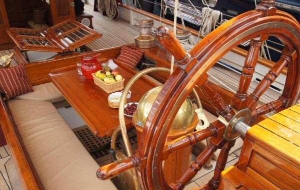The salon offers a casual elegant atmosphere with seating and a formal dining area. Forward of the salon, a guest double is on the port side, while aft, 2 twin cabins offer 2 single berths each. Overhead hatches and ample ports provide plenty of natural light and cool sea breezes.