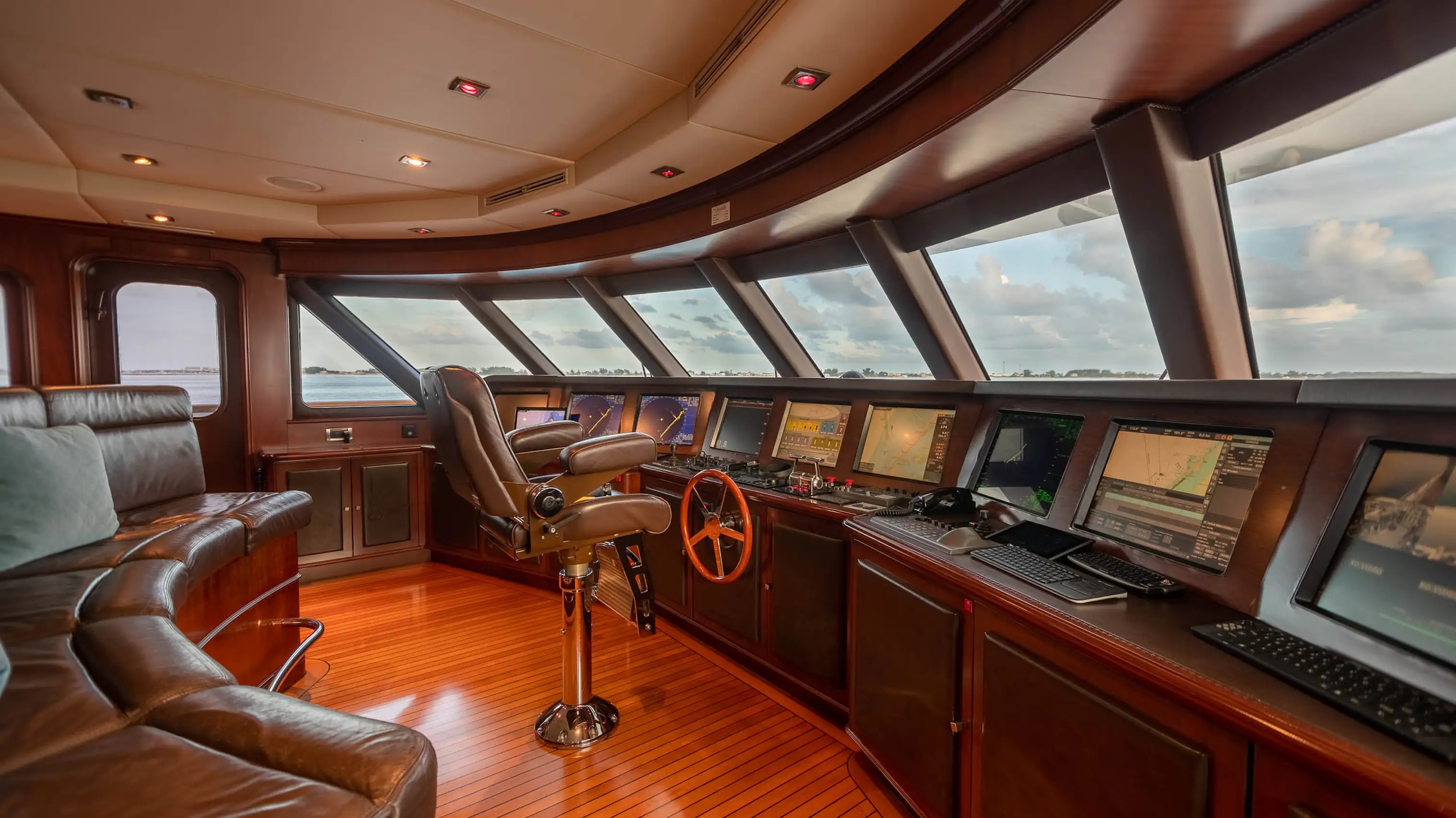On the upper deck, adjacent to the skylounge, is the aft bridge deck, boasting an alfresco dining option, ample seating and shade. This Trinity yacht offers a Sky-deck Spa Pool with a Daylight Flat screen TV and a BBQ Grill as well as beach picnic equipment.
