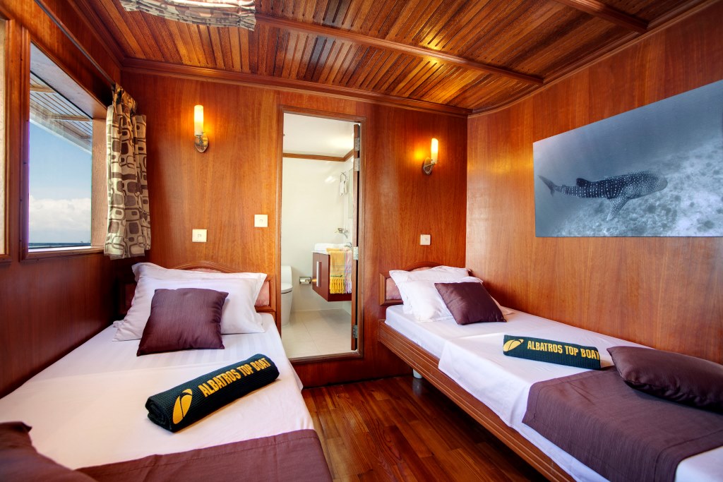 With a dedicated crew of 8, M/Y CONTE MAX can accommodate up to 18 charter guests in 8 deluxe cabins. The tri deck yacht CONTE MAX comes with a traditional Dhoni 15m (50ft) tender, specially equipped for the ultimate scuba diving experience.