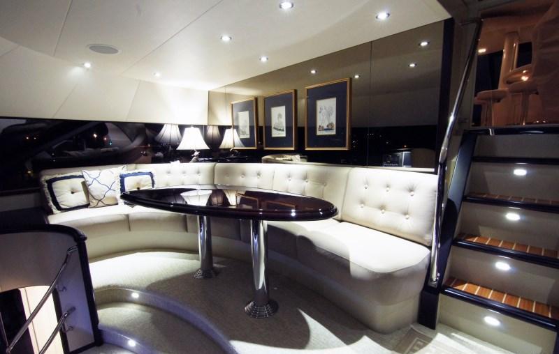 On the main deck, adjacent to the salon is the shaded aft deck, with plenty of seating and an alfresco dining option. Wrapping around the yacht 360°, the main deck leads to a large foredeck, with a further seating area.