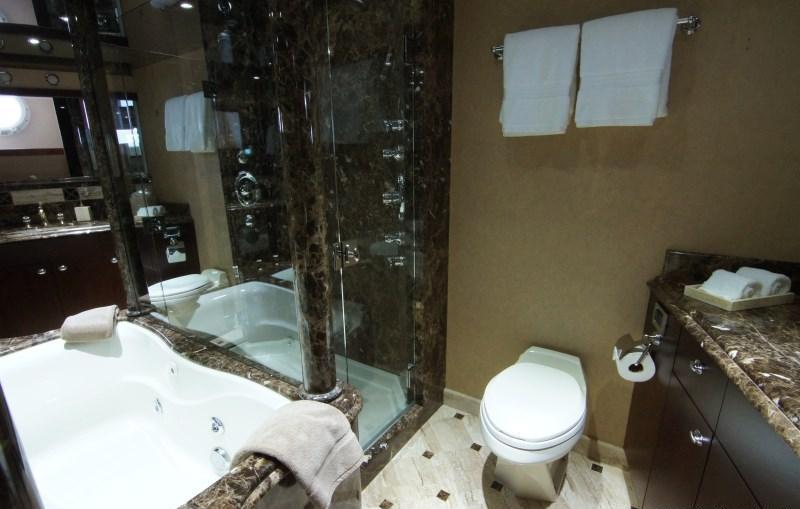 Forward, the formal dining table seats 8 guests with ease. Moving forward through the starboard foyer, the country style galley is adorned in fine marble counter tops and boasts a further casual dining area. The main deck is light and airy, surrounded by panoramic windows, ensuring unrivalled views.