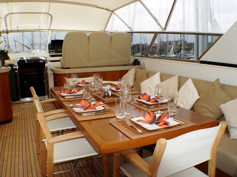 Her main deck is where charter guests will spend most of their time as this fantastic area features two large sun pads aft, a generous swim platform, a deck lounge, with bar, and dining - as well as another sun bathing up on the yacht’s fordeck.